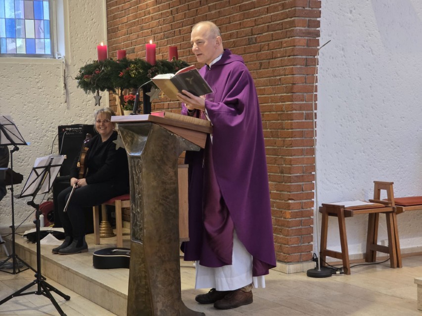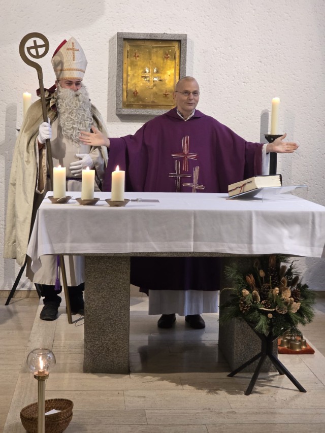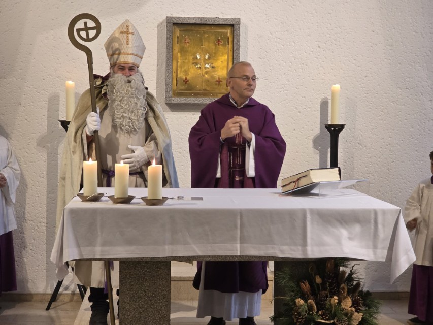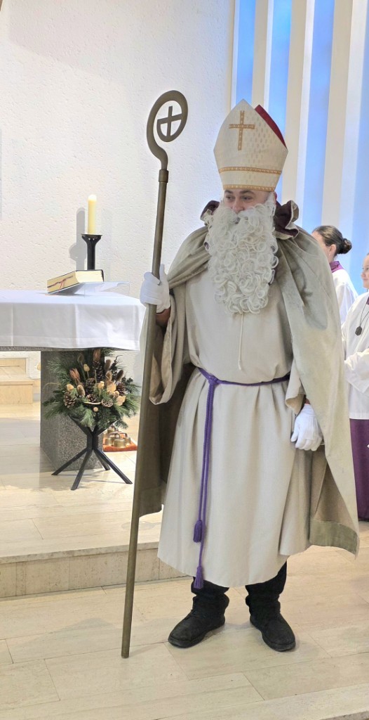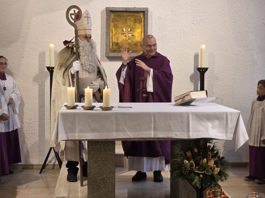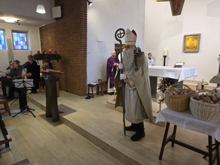 Am Sonntag, den 7. Dezember 2025 um 11.15 Uhr feierte die katholische Gemeinde St. Michael das St. Nikolausfest. Die Heilige Messe zelebrierte Pastor Stanislaw Serafin. Musikalisch begleitete Lukas Trowski mit weiteren Musikern der Gemeinde. In einer Dialogpredigt wurde sich über die Fragen: „Erwarten wir Gott in unserem Leben?“, „wie lassen wir Gott in unserem Leben wirken?“ und „wie können wir mit Dinge aufräumen, die uns belasten?“, ausgetauscht.