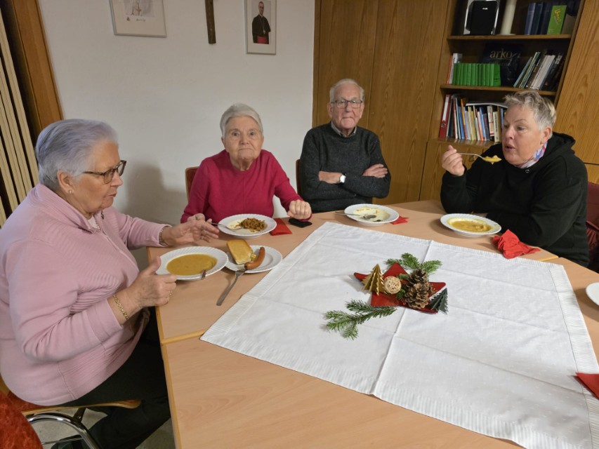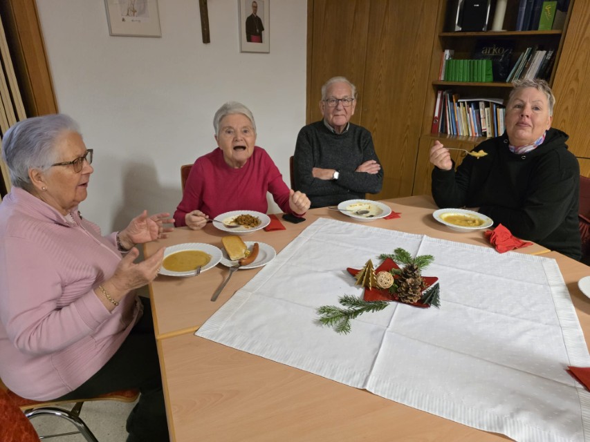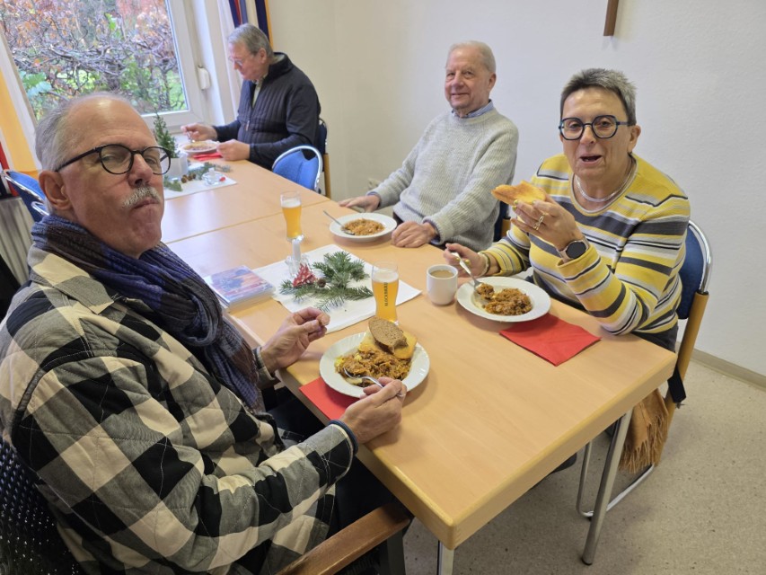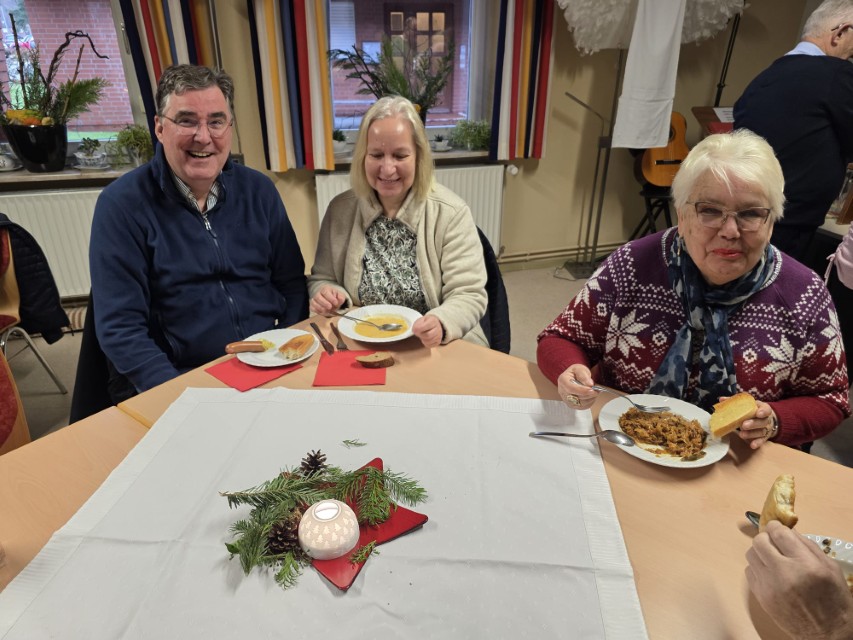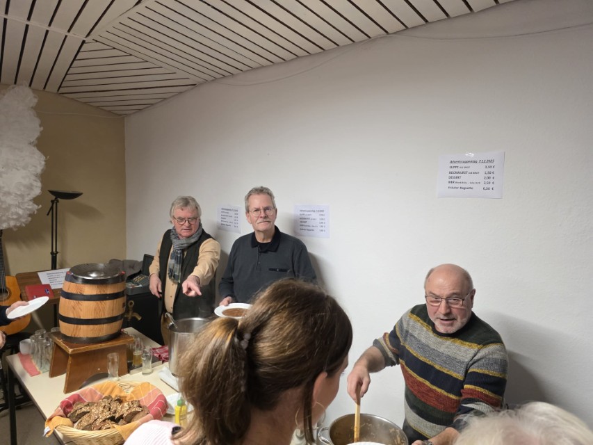 Nach dem Gottesdienst lud die Männerrunde von St. Michael traditionsgemäß alle zu herzhaften Suppen ein. Diese Einladung nahmen viele Besucher gerne an. Das Gemeindehaus war bis auf den letzten Sitzplatz belegt.