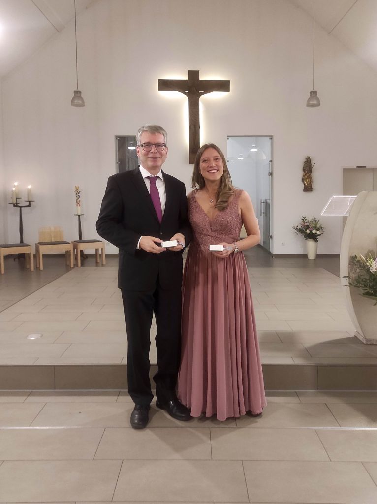 Die Zuhörerinnen und Zuhörer erlebten ein Konzert, das musikalische Vielfalt und tiefe spirituelle Ausdruckskraft verband. Als Zugabe wagten Susanna Proskura und Heiner Arden eine kleine Zeitreise rund 30 Jahre zurück, als die Sängerin bereits als Engel vor dem Altar gestanden hatte und das berühmte „Ave Maria“ von Bach-Gounod gesungen hat. Ein Moment, der viele im Publikum sichtbar bewegte.