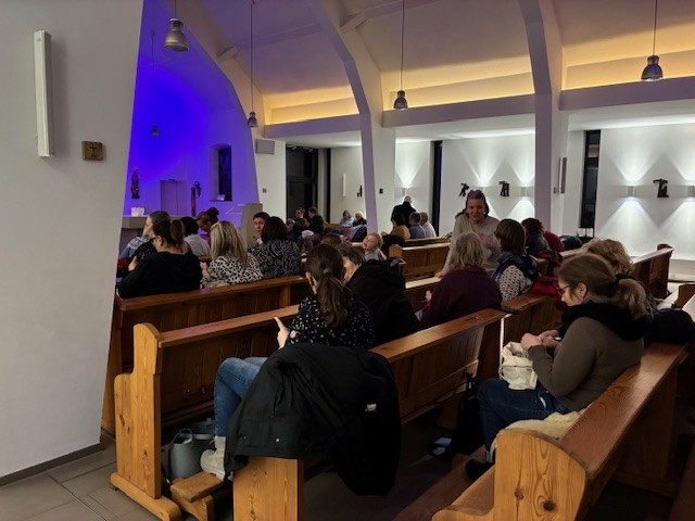 Gut 50 Besucher und Besucherinnen fanden in den Bänken der Kirche Platz. Um 19 Uhr ließ Daniel Jarosch die Orgel erklingen und ausgepackt wurden nicht etwa Liederbücher sondern Stricknadel und Wollfäden. Auch für Getränke wurde gesorgt.